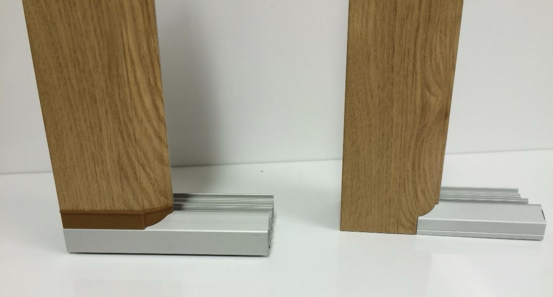 All Liniar Aluminium Thresholds are connected to the frame with a plastic end cap (Left).